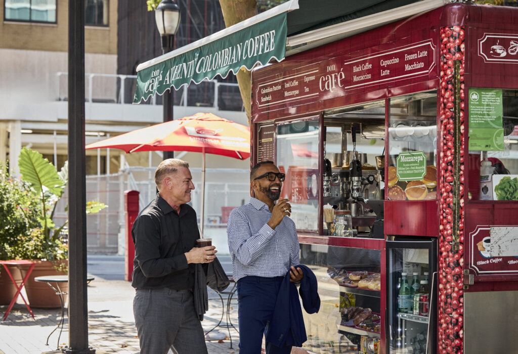 Absolutely. Guests can enjoy everything from espresso bars to sushi, classic delis, and French bistros, all just steps from the property.