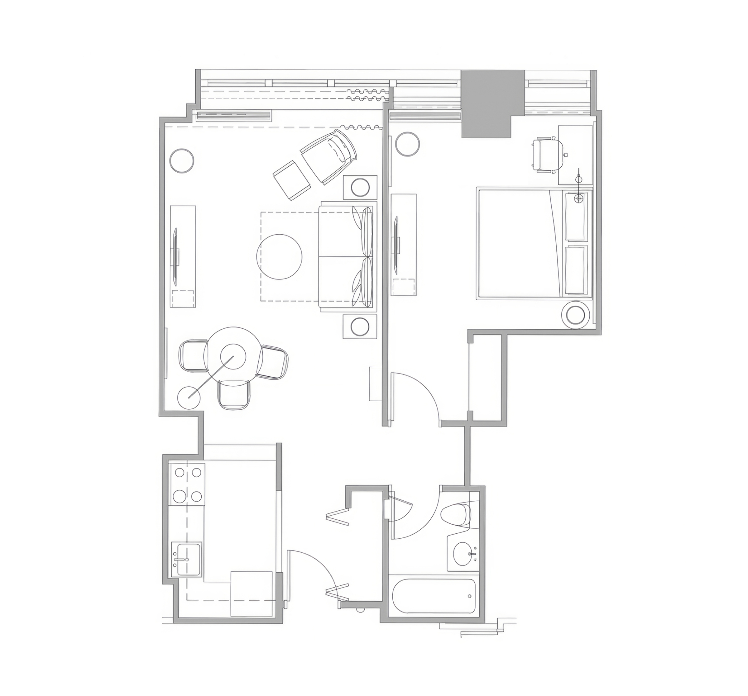 The Club one-bedroom apartments at The Phillips Club offer the space and comfort of a private residence with the service and sophistication of a boutique hotel. Averaging 750 square feet, each apartment includes a full kitchen, distinct living and dining areas, and refined contemporary furnishings. Perfect for longer stays, it provides a seamless blend of style and substance—where every detail is handled, and every day feels like home.